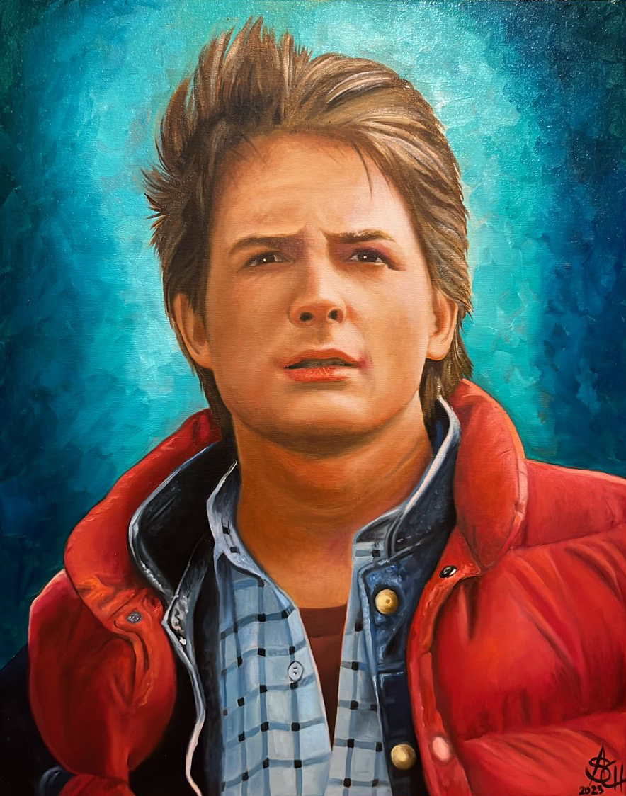 Este fué un retrato a pedido para un fanático de Volver al Futuro, Película en 3 ediciones desde el año 1985 interpretada por Michael J. Fox